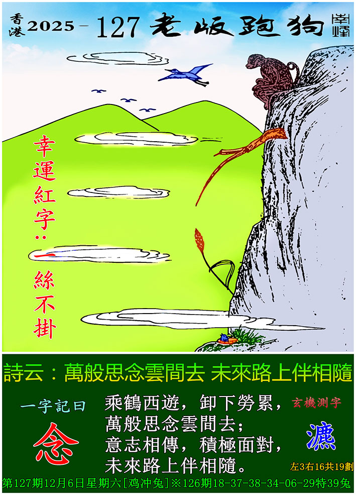 | 主题 :127期老版跑狗一字記之曰:【念】 玄機測字:《瀌》 |