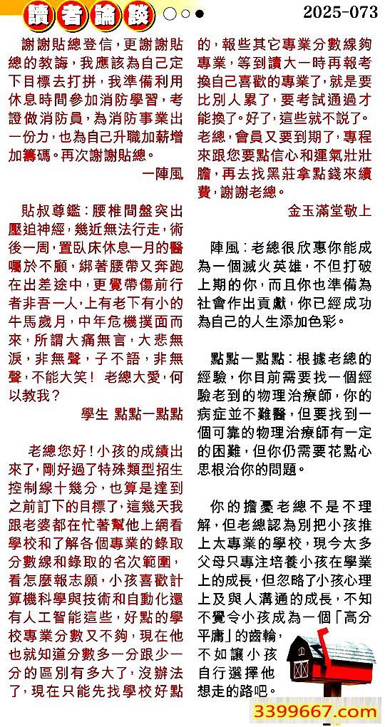 主题 :073期:彩民推荐〖貼信讀者論壇〗