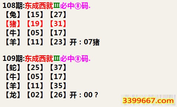 109期:东成西就Ⅲ必中⑧码