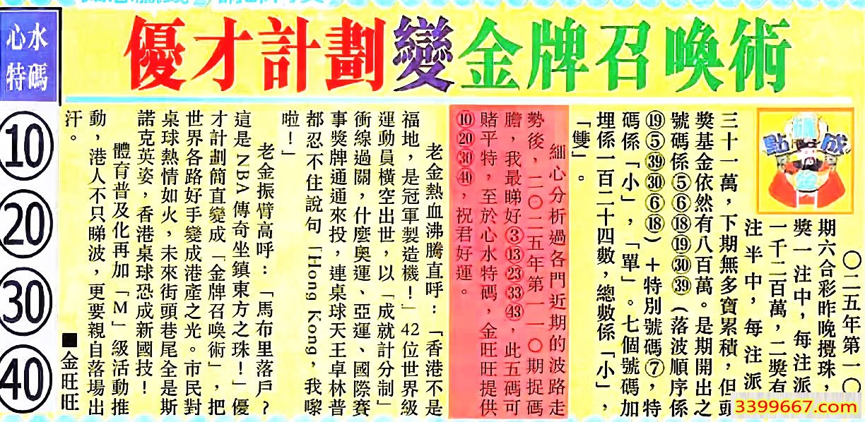 | 主题 :110期:金旺旺信箱彩民推荐→→《行出條路係靠腳》 |