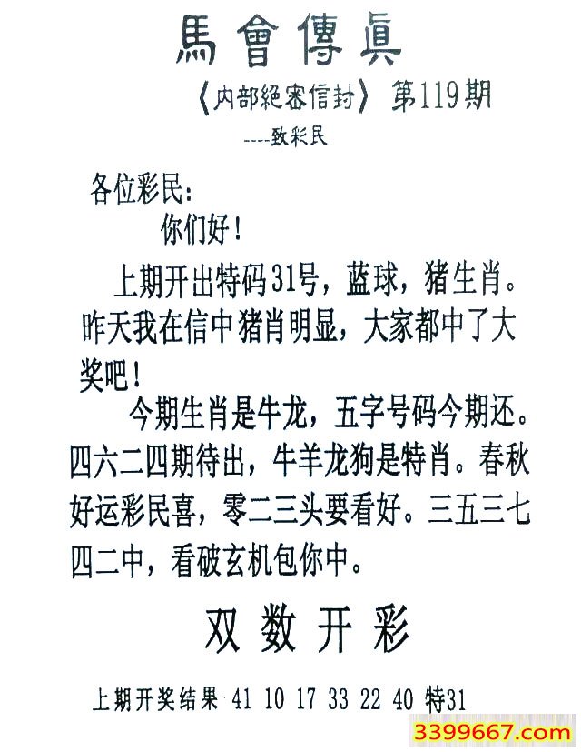 119期:首发推荐:≮馬會傳眞≯→(香港正版)