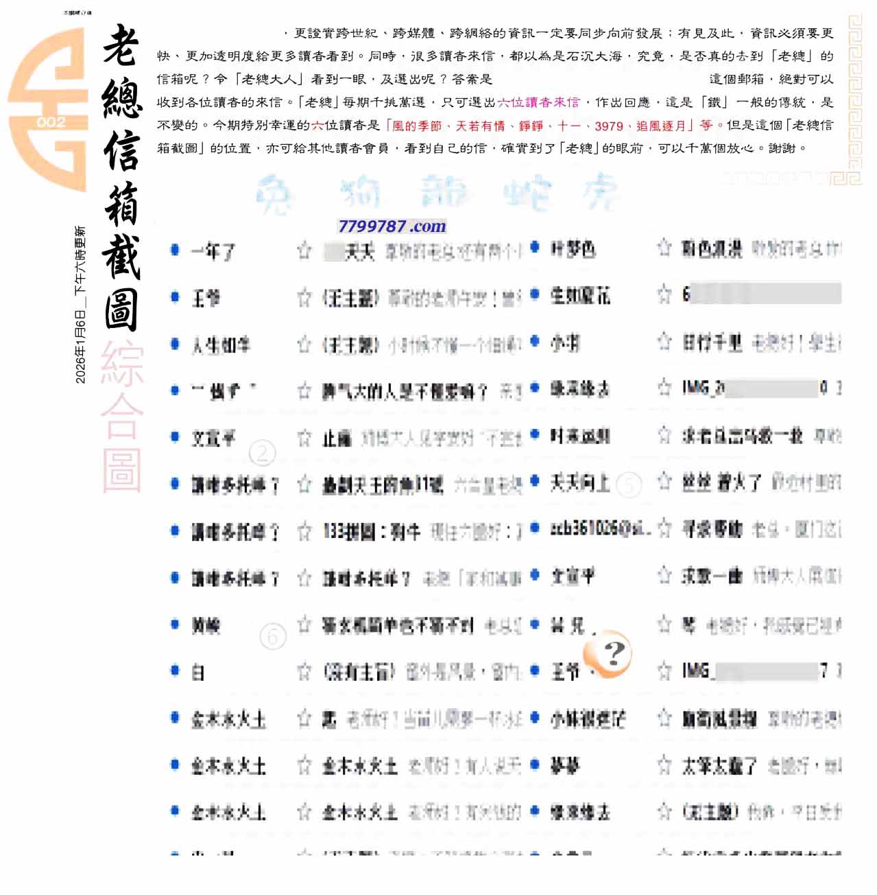 主题 :002期:六合皇金句/老总论码/萧公子/林大师/五行夺码/老总信箱截