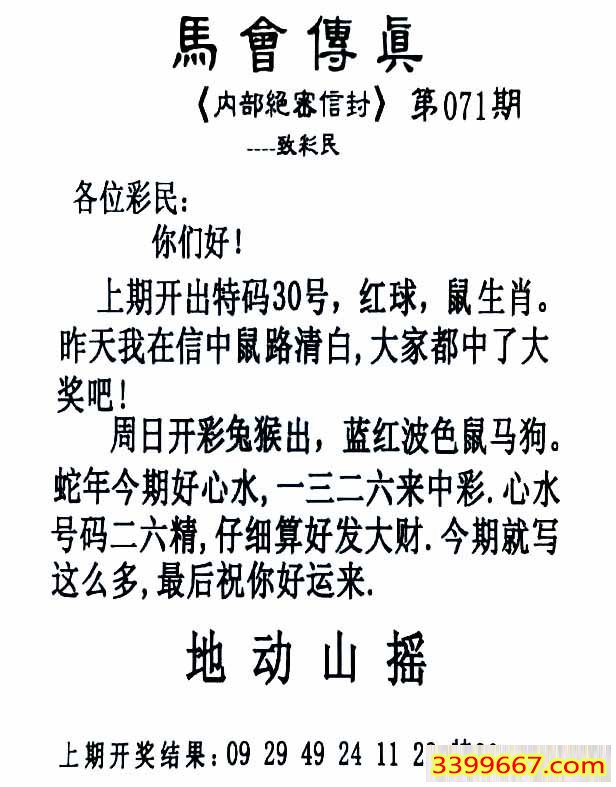 | 主题 :071期:首发推荐:≮馬會傳眞≯→(香港正版) |