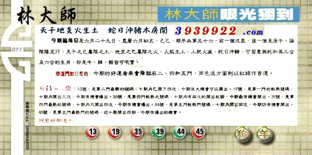 | 主题 :071期:六合皇金句/老总论码/萧公子/林大师/五行夺码/老总信箱截 |
