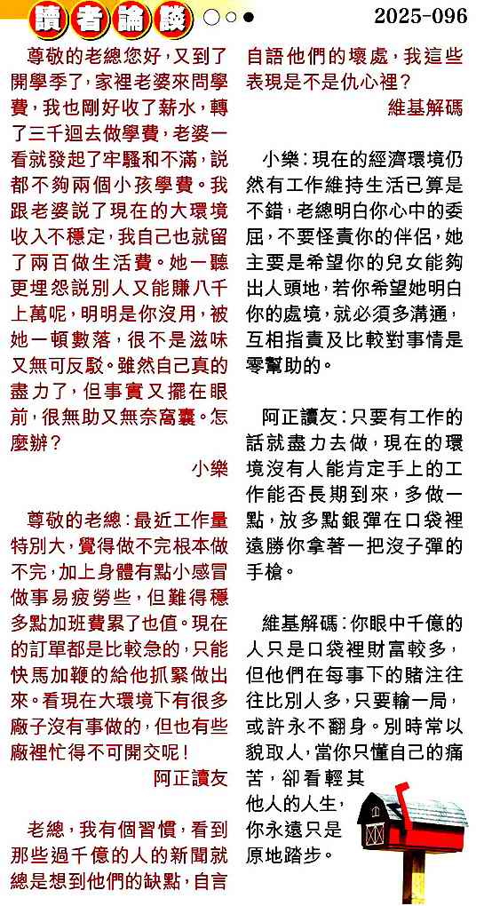| 主题 :096期:彩民推荐贴信读者论坛 |