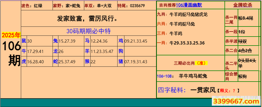 | 主题 :106期:小鱼儿30码期期中+幽默猜测 |