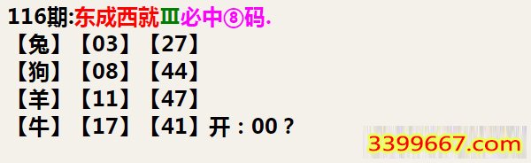 | 主题 :116期:东成西就Ⅲ必中⑧码 |