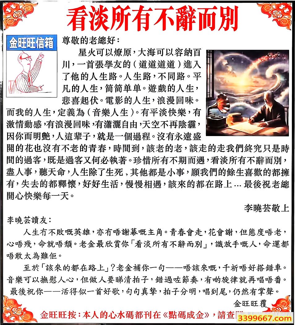 | 主题 :128期:金旺旺信箱彩民推荐→→《看淡所有不辭而別》 |