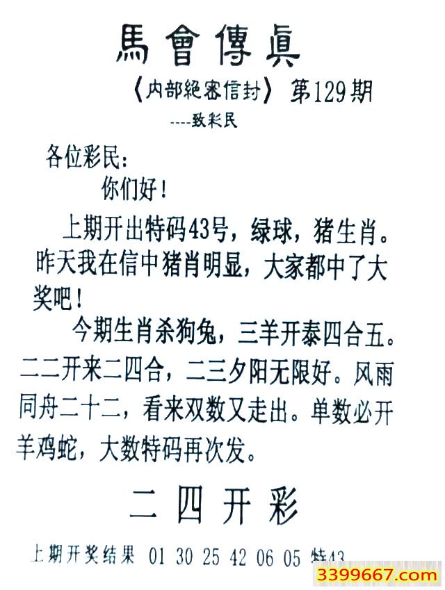 | 主题 :129期:首发推荐:≮馬會傳眞≯→(香港正版) |