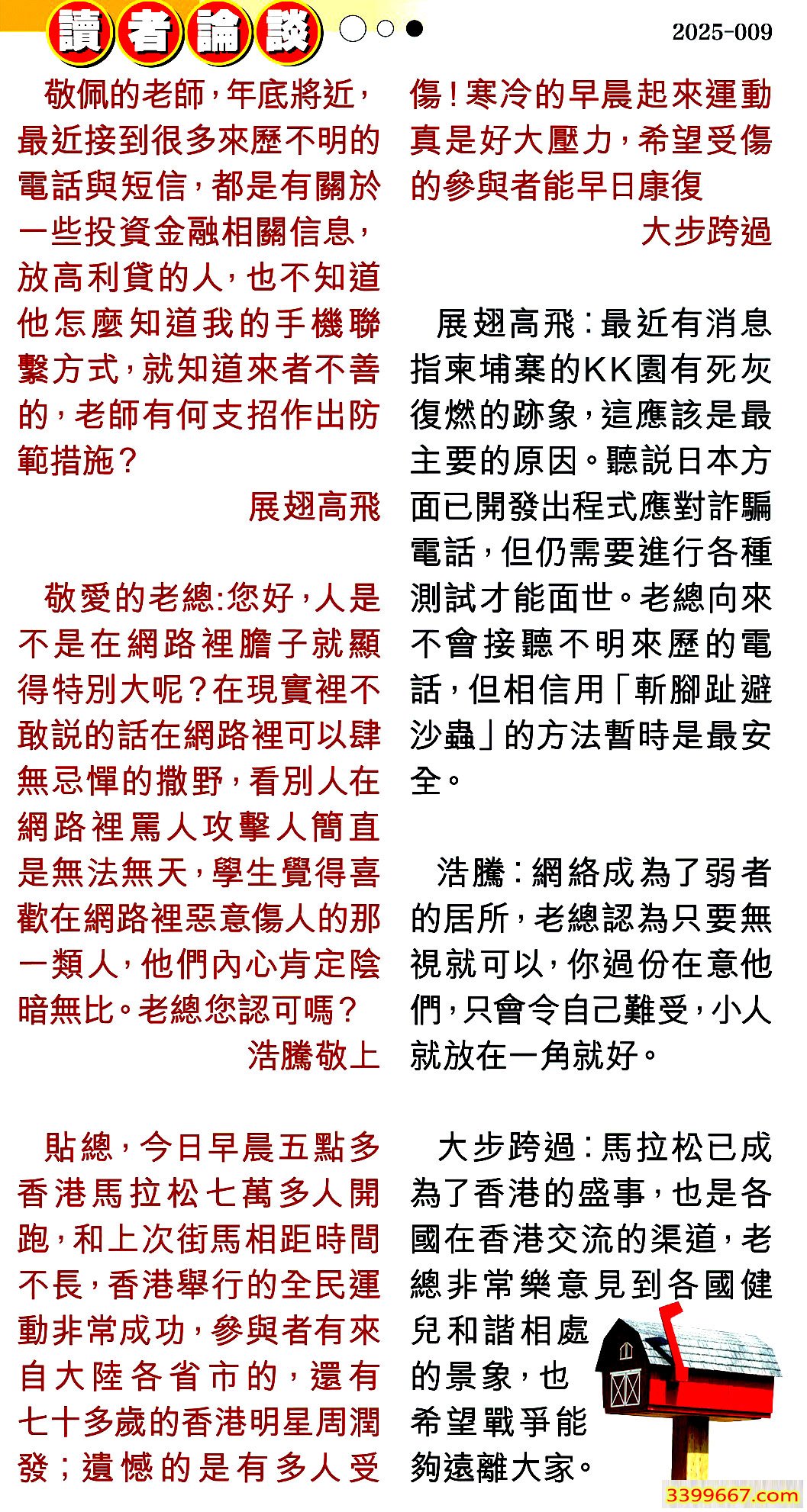 | 主题 :009期:彩民推荐〖貼信讀者論壇〗 |