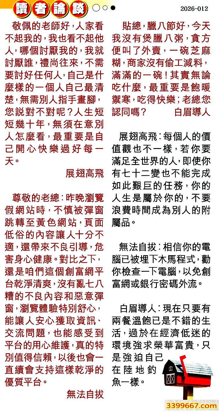 | 主题 :012期:彩民推荐〖貼信讀者論壇〗 |
