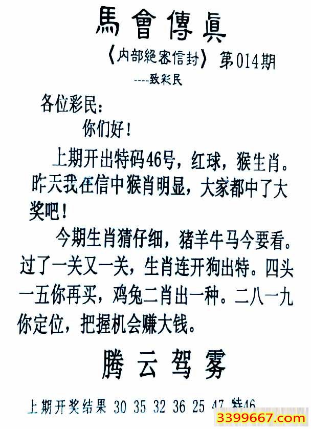014期:首发推荐:≮馬會傳眞≯→(香港正版)