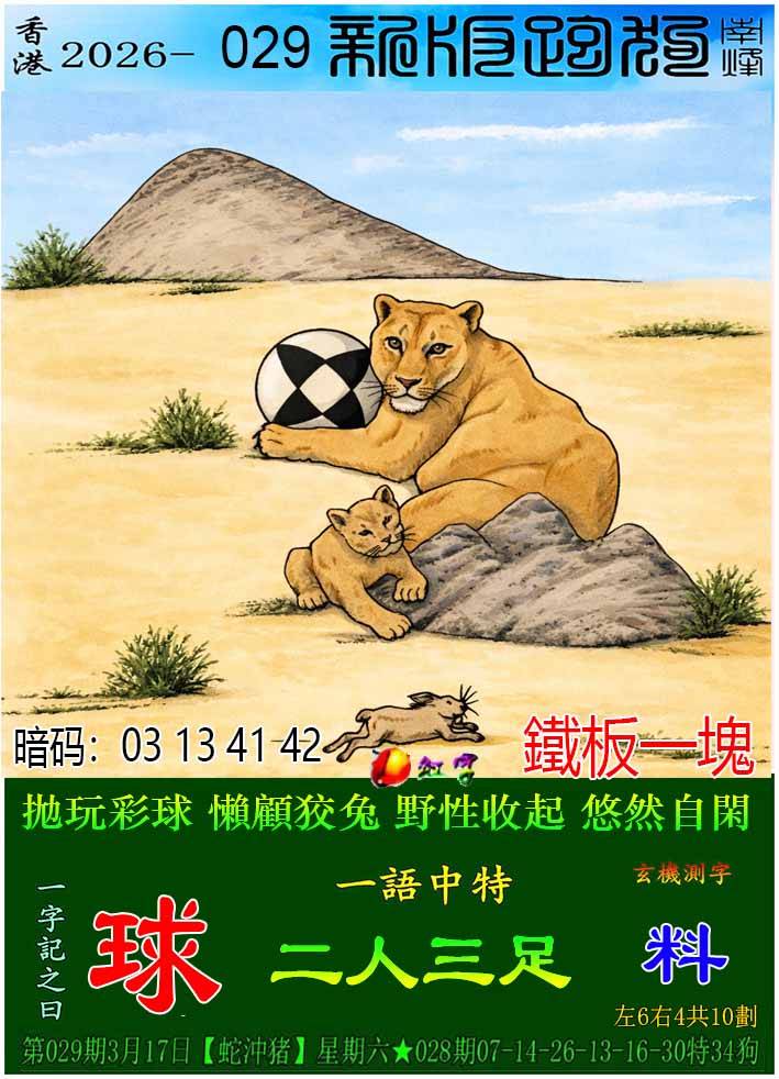主题 : 029期新版跑狗一字記之曰:【球】玄機測字:《料》
