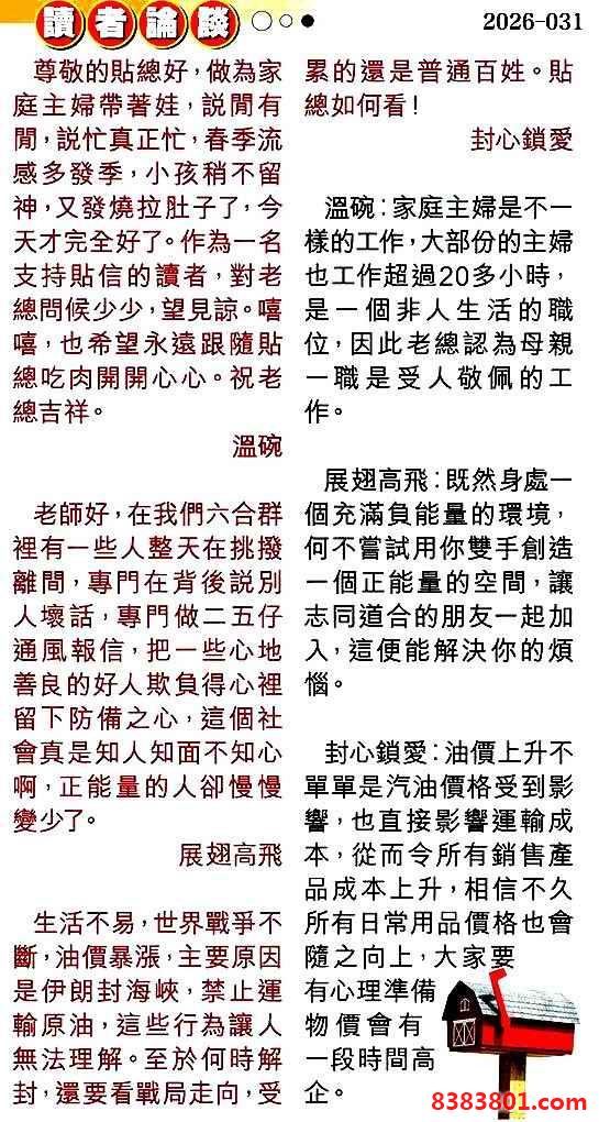 031期:彩民推荐贴信读者论坛